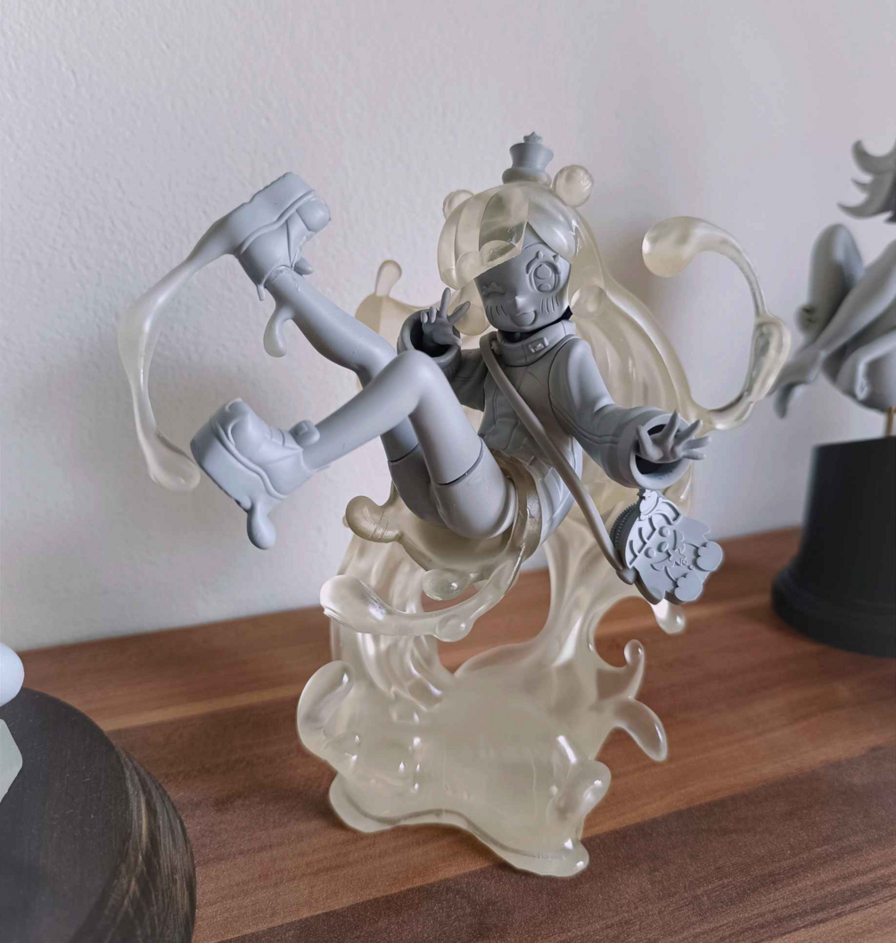 For that gooey, gradient look seen in the prototypes, I recommend printing the hair, shoes, legs, and jacket in clear resin. Mine turned out yellow because I used budget resin — but you can use colorless resin and tint/paint to match her signature look.